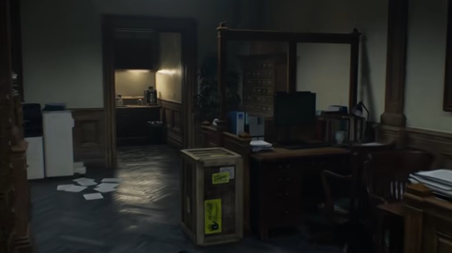 2:你会发现有个办公桌左侧的箱子是可以互动的,用脚踢碎这个箱子。发出的声音会惊动右侧房间里面的两个怪物。